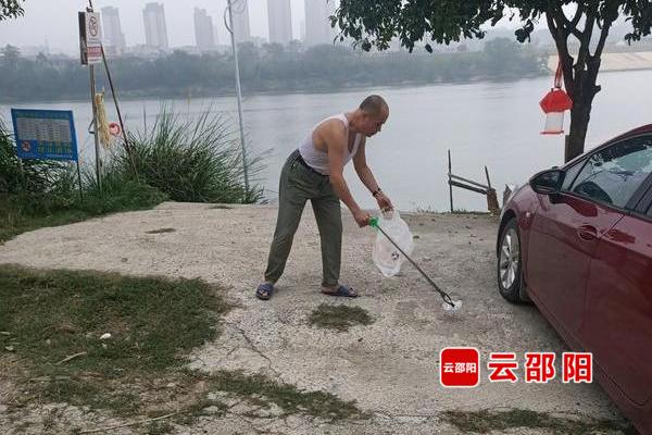 尹文兵是邵阳市环境保护志愿者联合会副会长,也是"邵阳滩主"项目的发起人和践行者之一。4年多以来,他的汽车尾箱里总少不了两样“标配”:一是垃圾夹,二是垃圾袋。作为一名四季游泳爱好者,每次上岸后,他总要把河滩上的白色垃圾捡拾得干干净净才会回家。10月1日至8日,他每天都参加净滩。