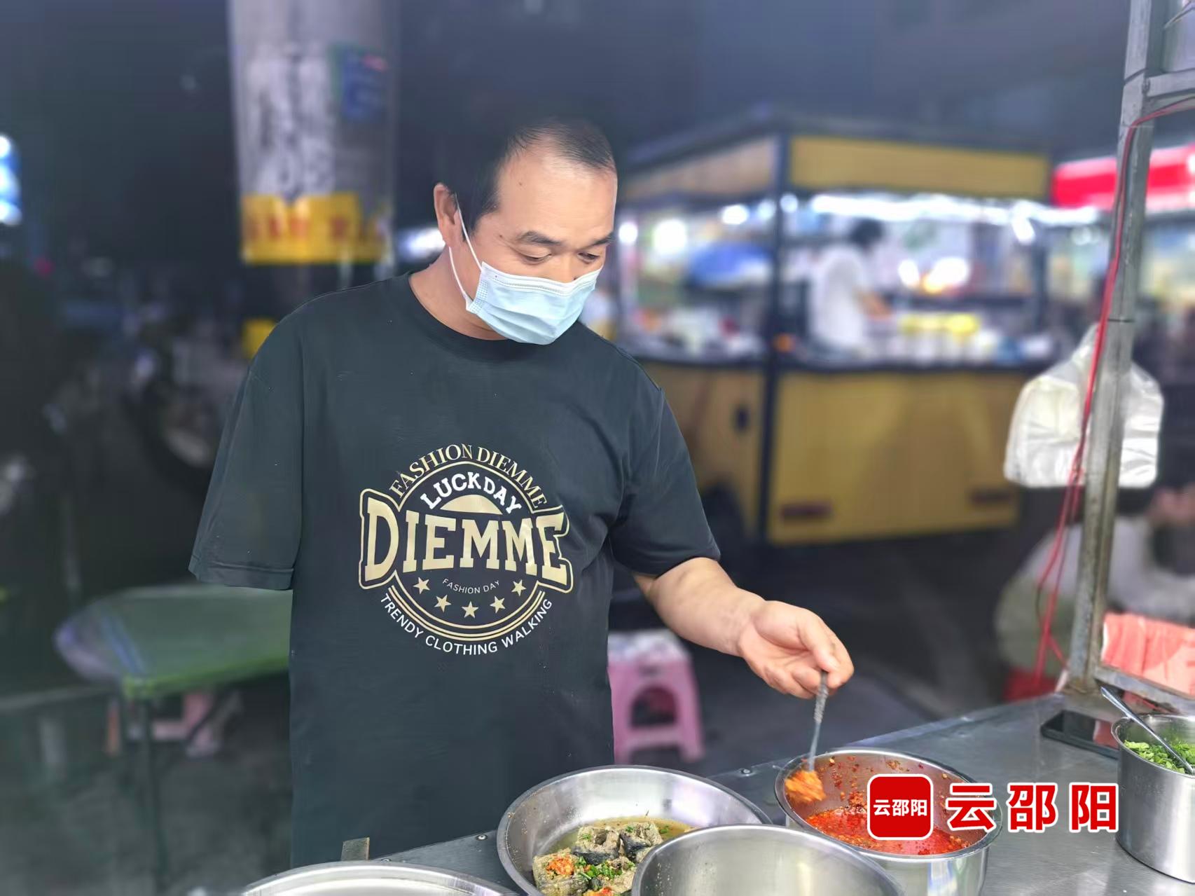 2022年,刘良富毅然返回隆回。他在县城租下一间车库,陪着小儿子读书,四处考察后,将摊位选在了沿江北路一带的夜市。
